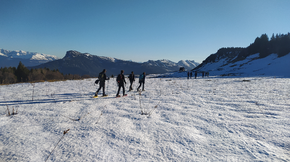 Le samedi 13 décembre, nous avons traversé le plateau du Sornin et de la Molière et, une fois en haut, nous avons pu chausser nos raquettes car il y avait une couche de neige gelée.